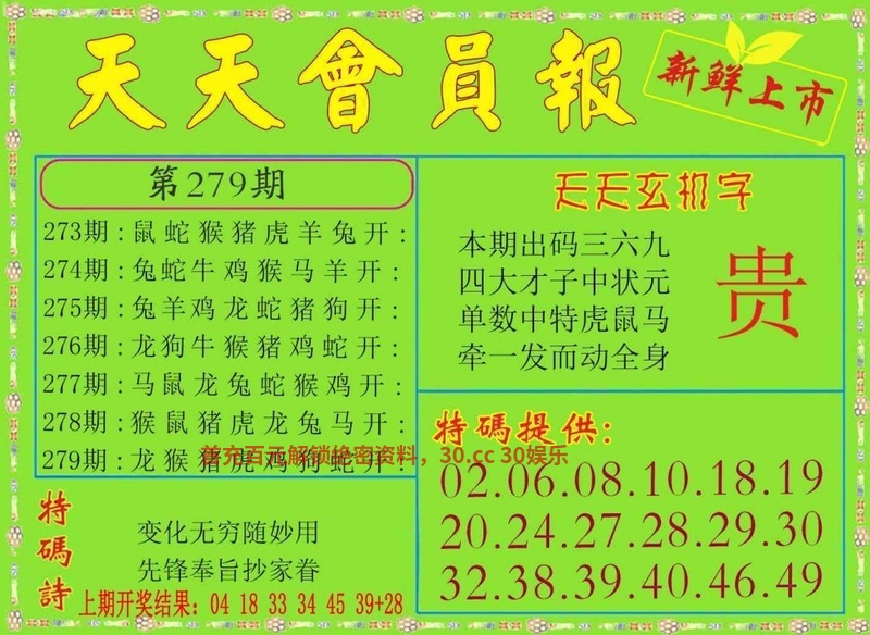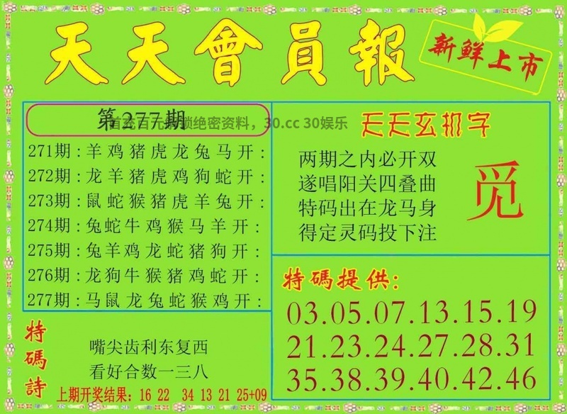276期九码 | 13 35 06 09 26 19 28 15 44 | 开:鸡09 |